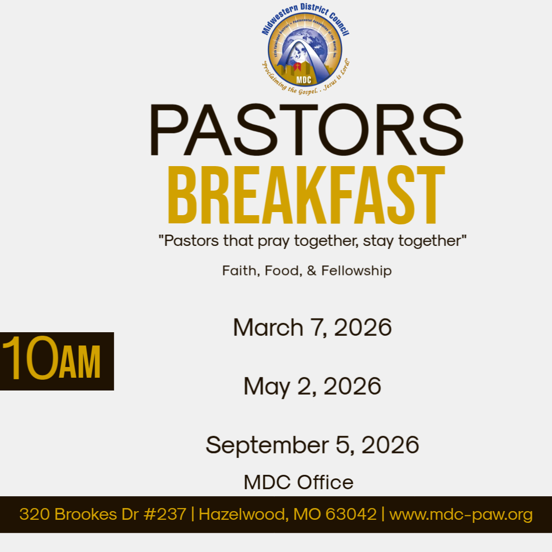 The 2026 Election of Officers for the Midwestern District Council, 12th Episcopal District of the Pentecostal Assemblies of the World, Inc., will be held on Friday, July 11, 2026, in its regular session. All members who have registered in the last two of three councils, registered during the current Council, and are in good standing within the Council and their jurisdiction are eligible to vote.